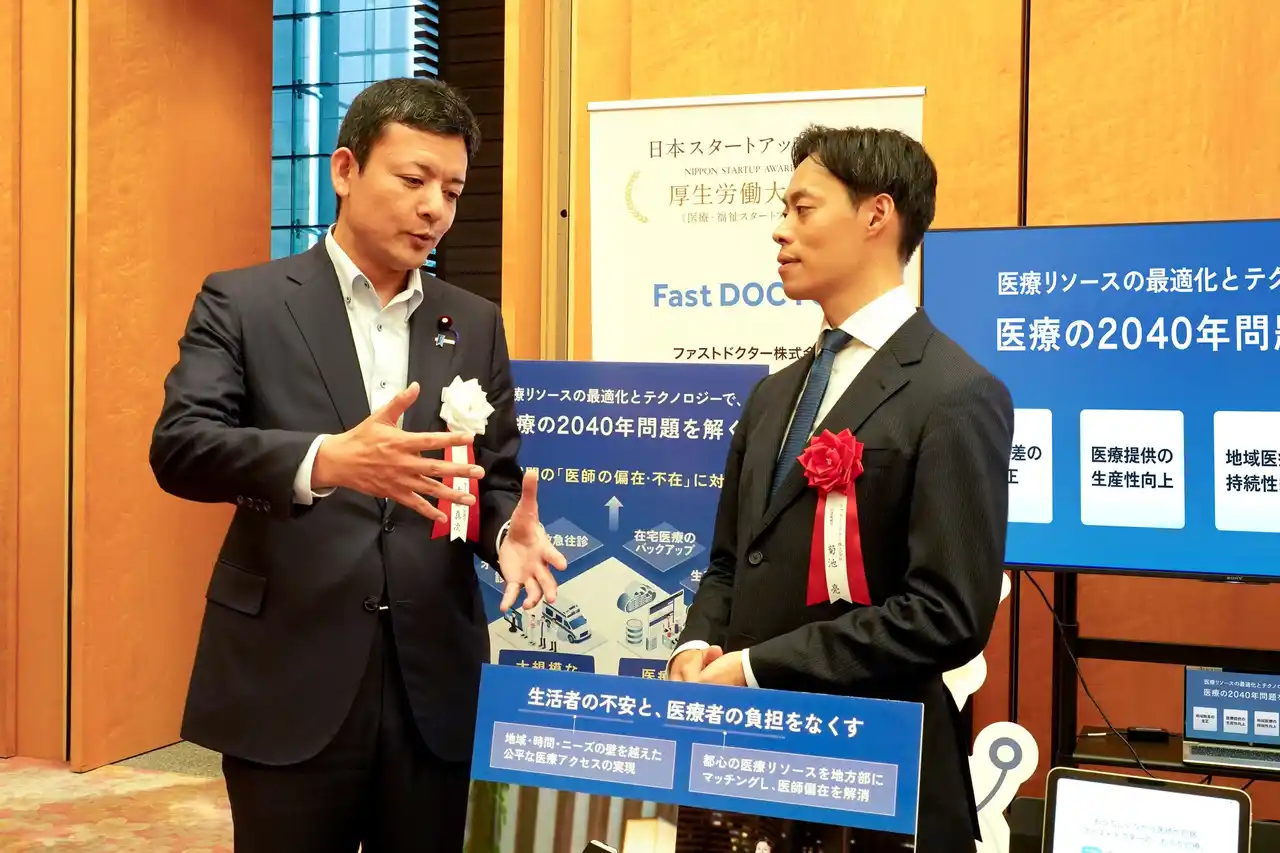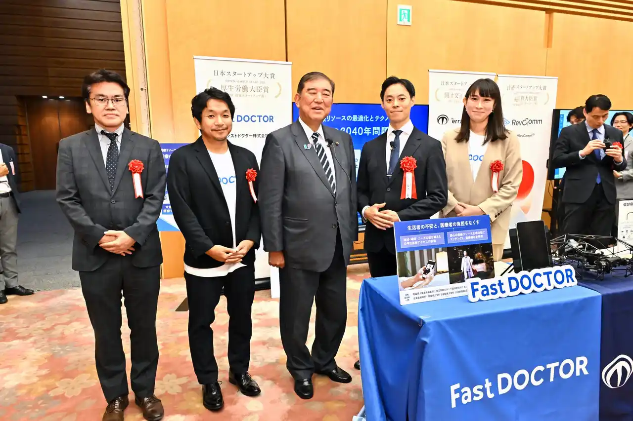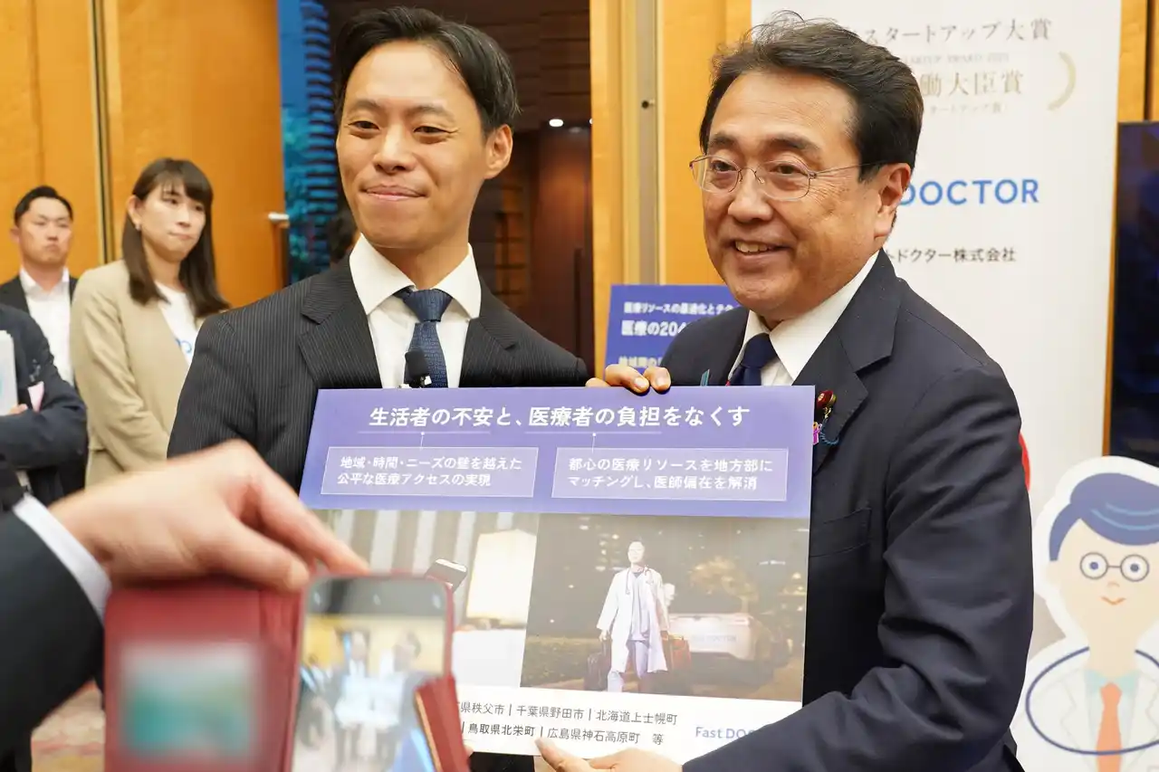 ファストドクター株式会社(本社:東京都渋谷区、代表取締役:菊池 亮[医師]、水野 敬志、以下「当社」)は、2025年8月26日に首相官邸で開催された「日本スタートアップ大賞2025」の表彰式において、医療・福祉分野における社会課題への取り組みが高く評価され、「厚生労働大臣賞(医療・福祉スタートアップ賞)」を受賞いたしました。 |