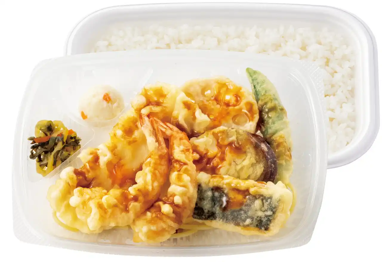 エビ2尾/イカ/カレイ/野菜3種 海鮮天ぷら弁当 740円 |