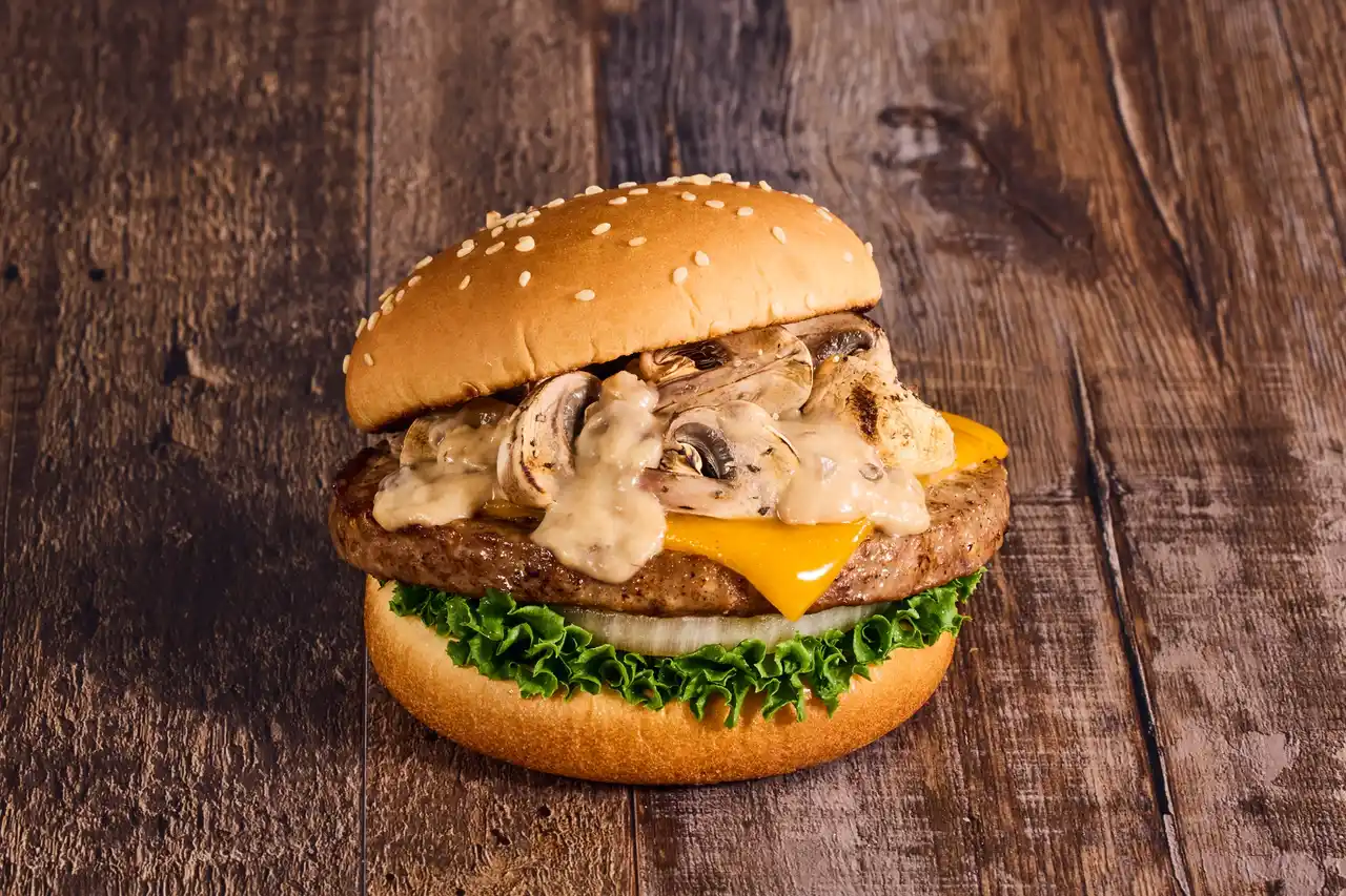 | ■世界三大きのこの贅沢ソースを使用したマッシュルームチーズバーガーとご一緒に! | |||||||||