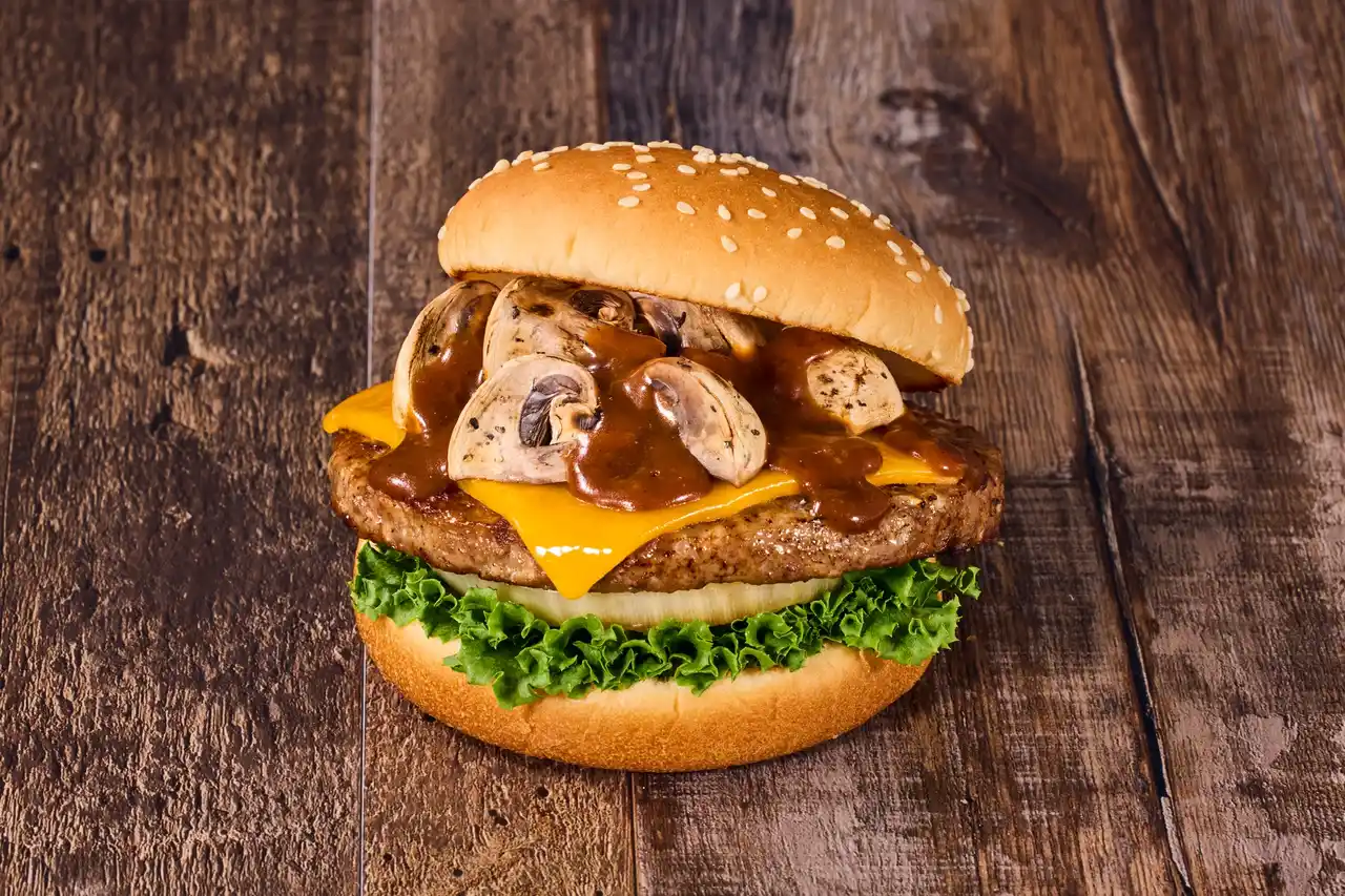 | マッシュルームチーズバーガー トリュフデミグラスソース 890円 | |||||||||