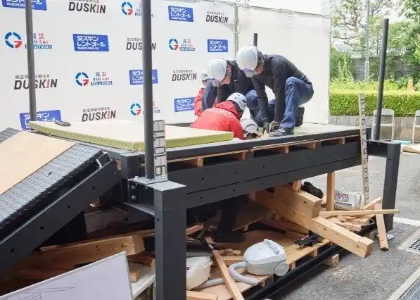 今回の出展では、ダスキン レントオールが防災サポートサービス内で提供している、蓄電池や間仕切りパネルなどの避難所運営備品の展示とともに、2025年6月に全国ではじめてレンタルを開始した、地震による建物倒壊現場などでの救助・医療活動を実践的に学べる訓練装置『Rescue Training Module(R)』を展示いたします。展示期間中は実際に『Rescue Training Module(R)』の中に入り、倒壊した建物内の空間を体験できる来場者参加型「閉じ込め体験」を行います。また、9月1日・2日には各日1回、約30分間の救助訓練デモンストレーションを行い、実際の救出活動を間近でご覧いただけます。 |