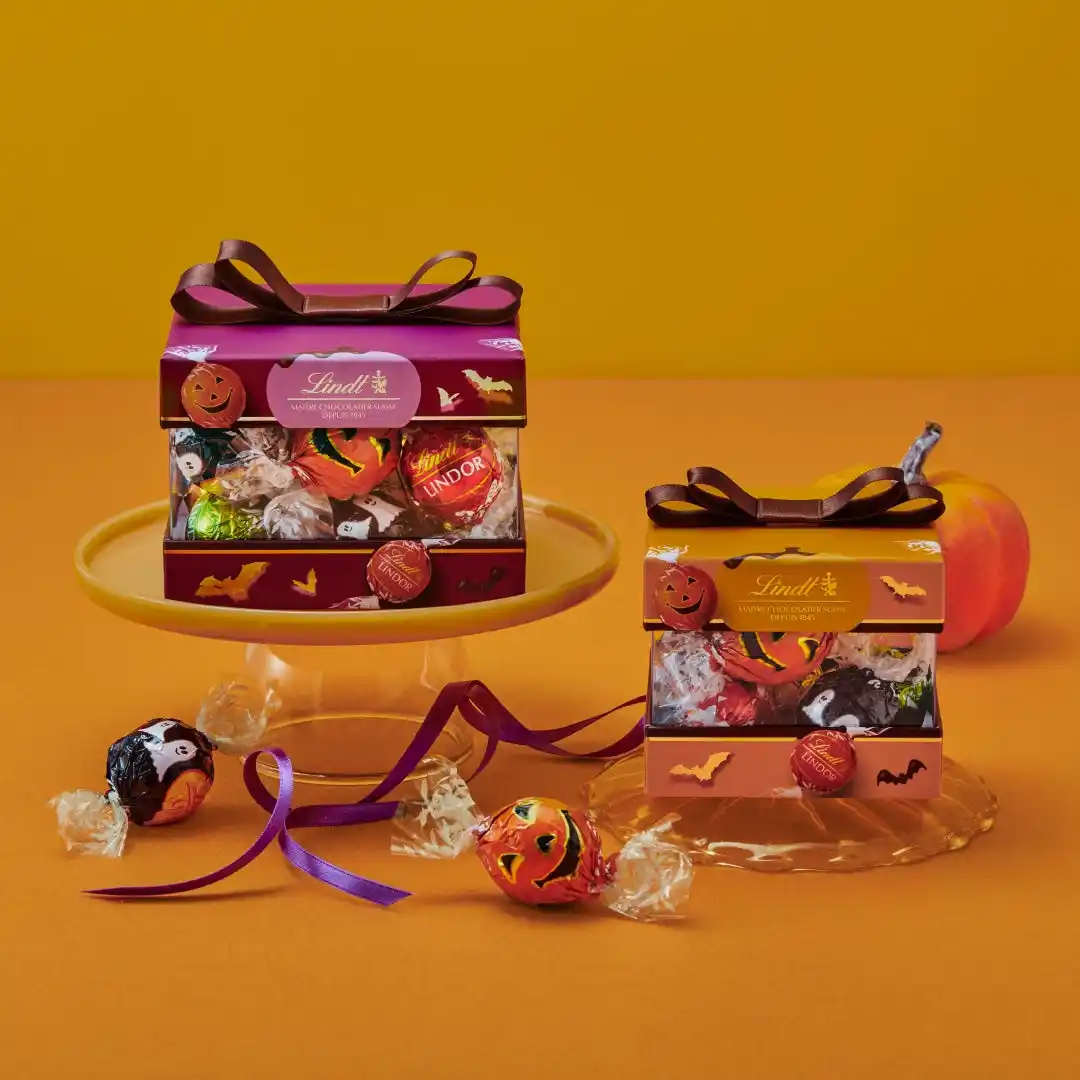 定番フレーバーに加え、秋限定の「ハロウィン」「ゴースト」のリンドールを詰め合わせたギフトボックス。楽しげなジャック・オ・ランタンをデザインした限定パッケージです。パーティーへの手土産や、お世話になった方への季節のご挨拶にも最適。この時期だけの特別なリンドールが、わくわくするような甘いひとときをお届けします。 |