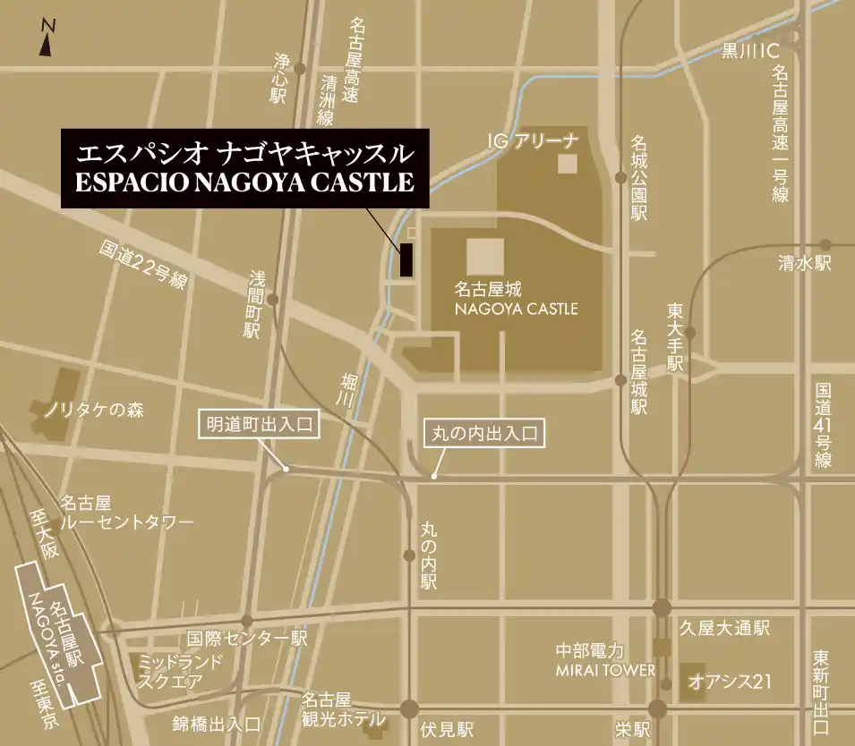 地下鉄鶴舞線「浅間町」駅徒歩約10分、地下鉄名城線「名古屋城」駅徒歩約15分 |