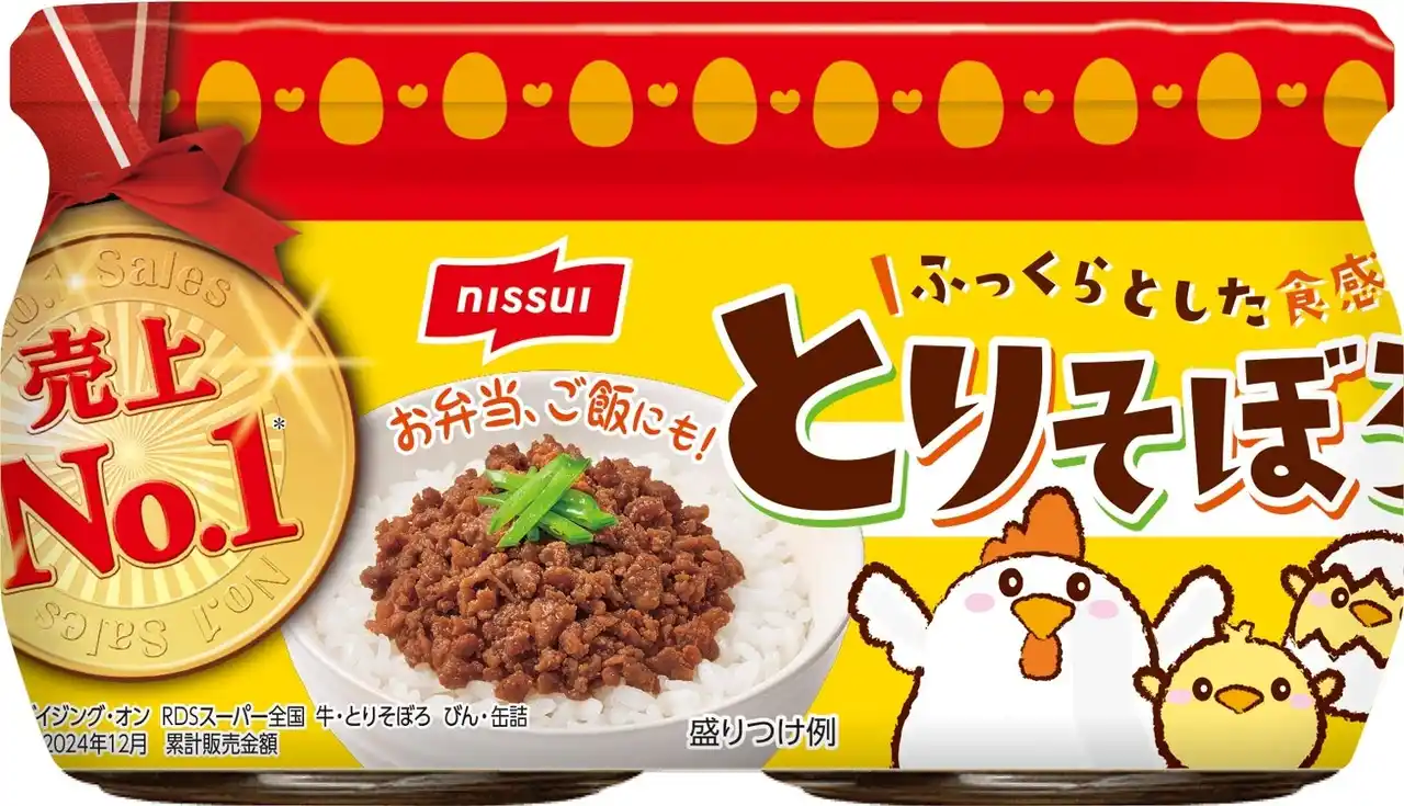 | 秋は、家族や仲間と屋外で楽しむイベントが多い行楽シーズンです。サケの旨みが味わえる「焼さけあらほぐし」や甘みとコクのある味付けに仕上げた「とりそぼろ」などのニッスイのびん詰は、おにぎりやお弁当はもちろん、普段の簡単おかずにも使えて便利なうえ、手軽にタンパク質をプラスできます。 | |||||||||