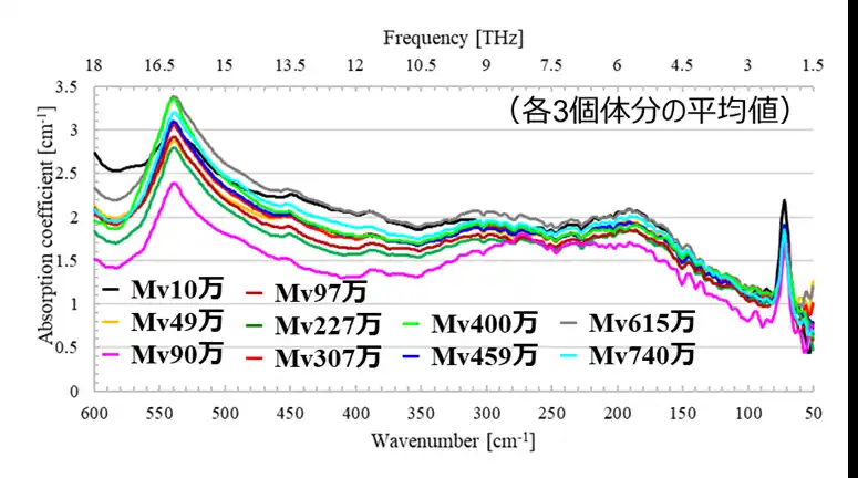 ポリエチレンの分子量とテラヘルツ(THz)吸収係数スペクトル |