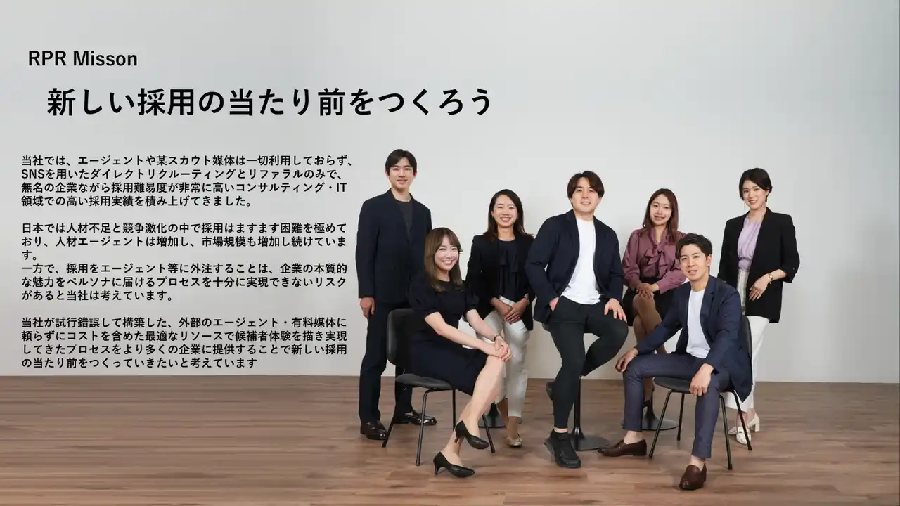 日本では人材不足と競争激化の中で採用はますます困難を極めており、人材エージェントは増加し、市場規模も増加し続けています。一方で、採用をエージェント等に外注することは、企業の本質的な魅力をペルソナに届けるプロセスを十分に実現できないリスクがあると考えています。 |