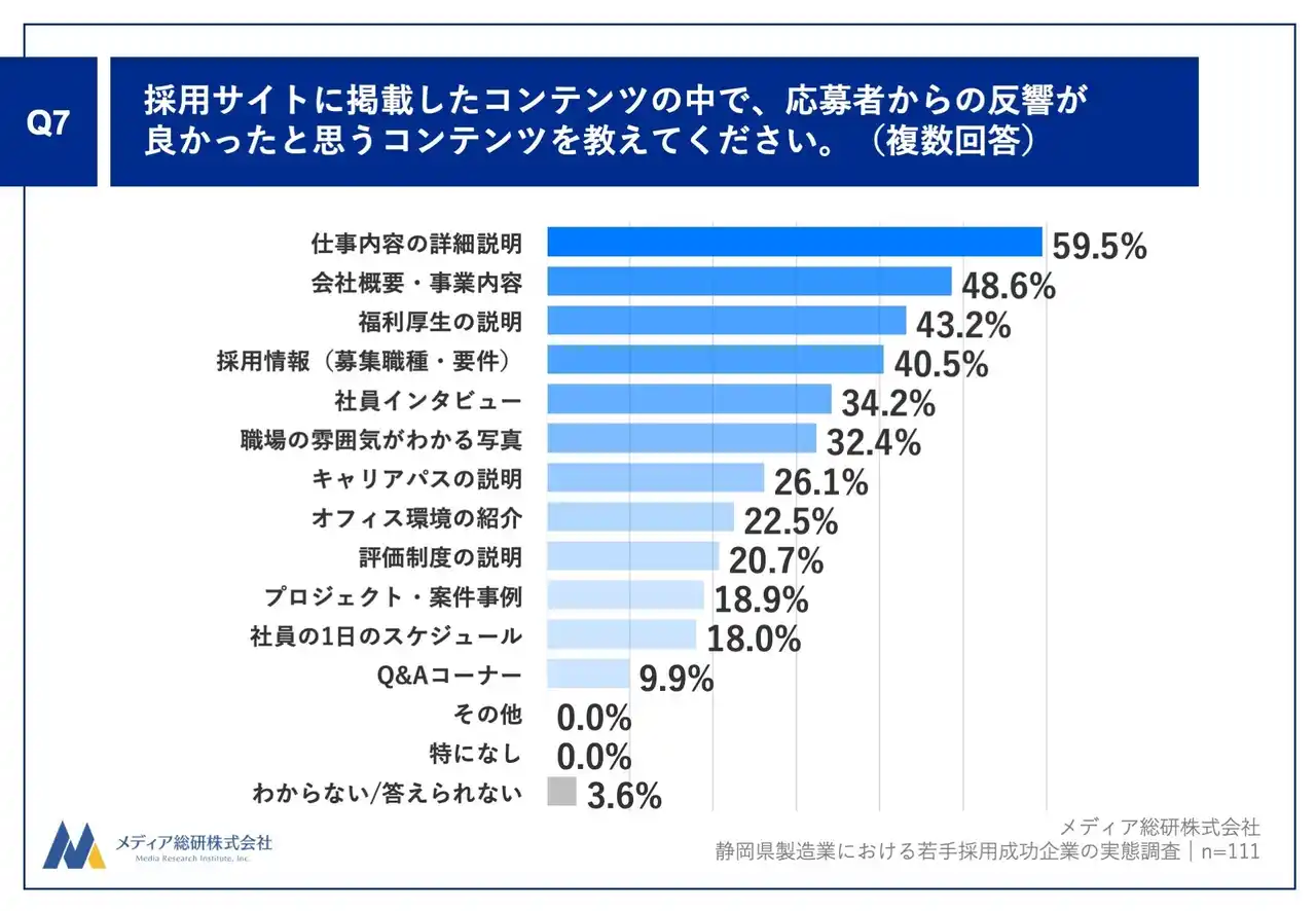 「Q7.採用サイトに掲載したコンテンツ(※4) の中で、応募者からの反響が良かったと思うコンテンツを教えてください。(複数回答)」