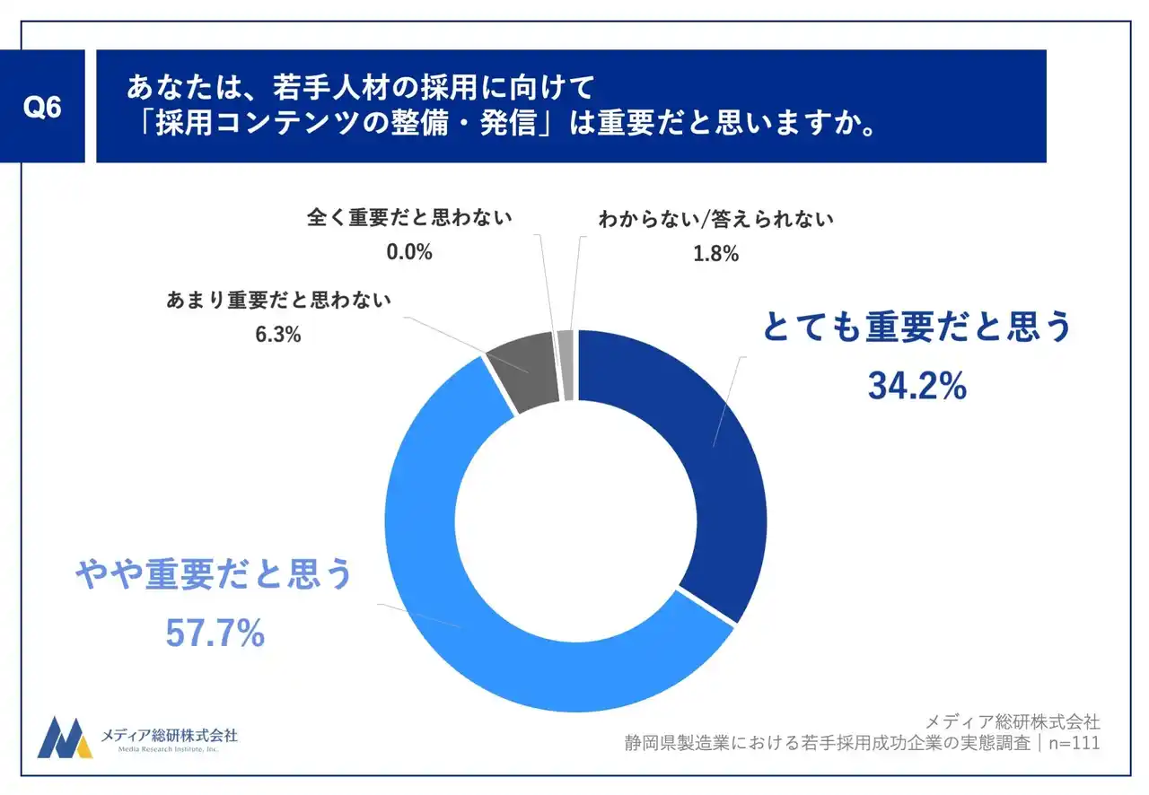 「Q6.あなたは、若手人材の採用に向けて『採用コンテンツ(※3)の整備・発信』は重要だと思いますか。」