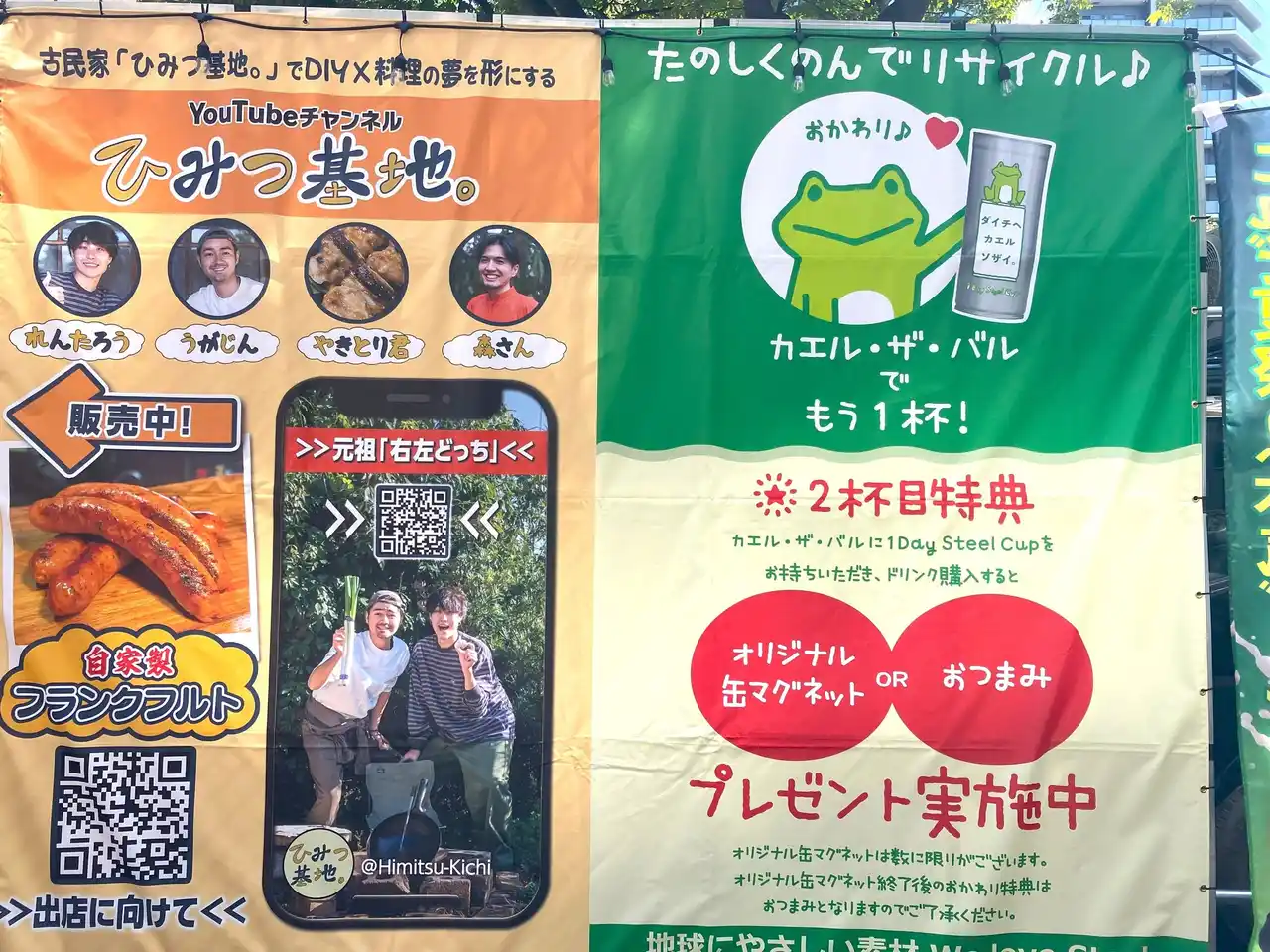 | 今回のイベントでは人気クリエイター「ひみつ基地。」のキッチンカーブースとの連動企画が実現し、「カエル・ザ・バル」を含めた2店舗で1Day Steel Cupを使ったドリンクを提供しました。千葉市中央公園付近では「1Day Steel Cup」を片手にお祭りを楽しむ方や、乾杯している方など思い思いの形でカップを利用している様子が見られました。 | ||||||||||||||