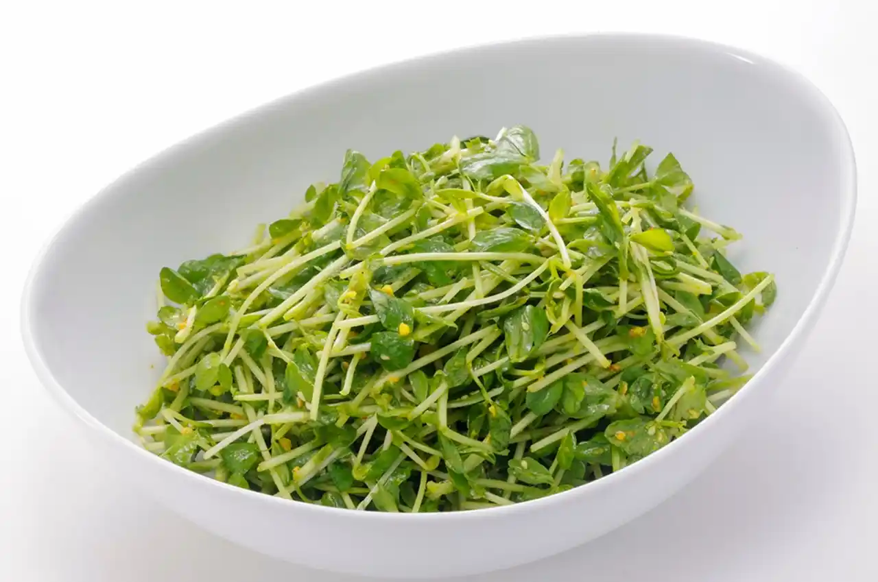 豆苗のシャキシャキとした食感とからしのピリッとした風味が相性抜群。お肉と一緒に食べると食感が楽しく、さっぱりと食べられます。 |