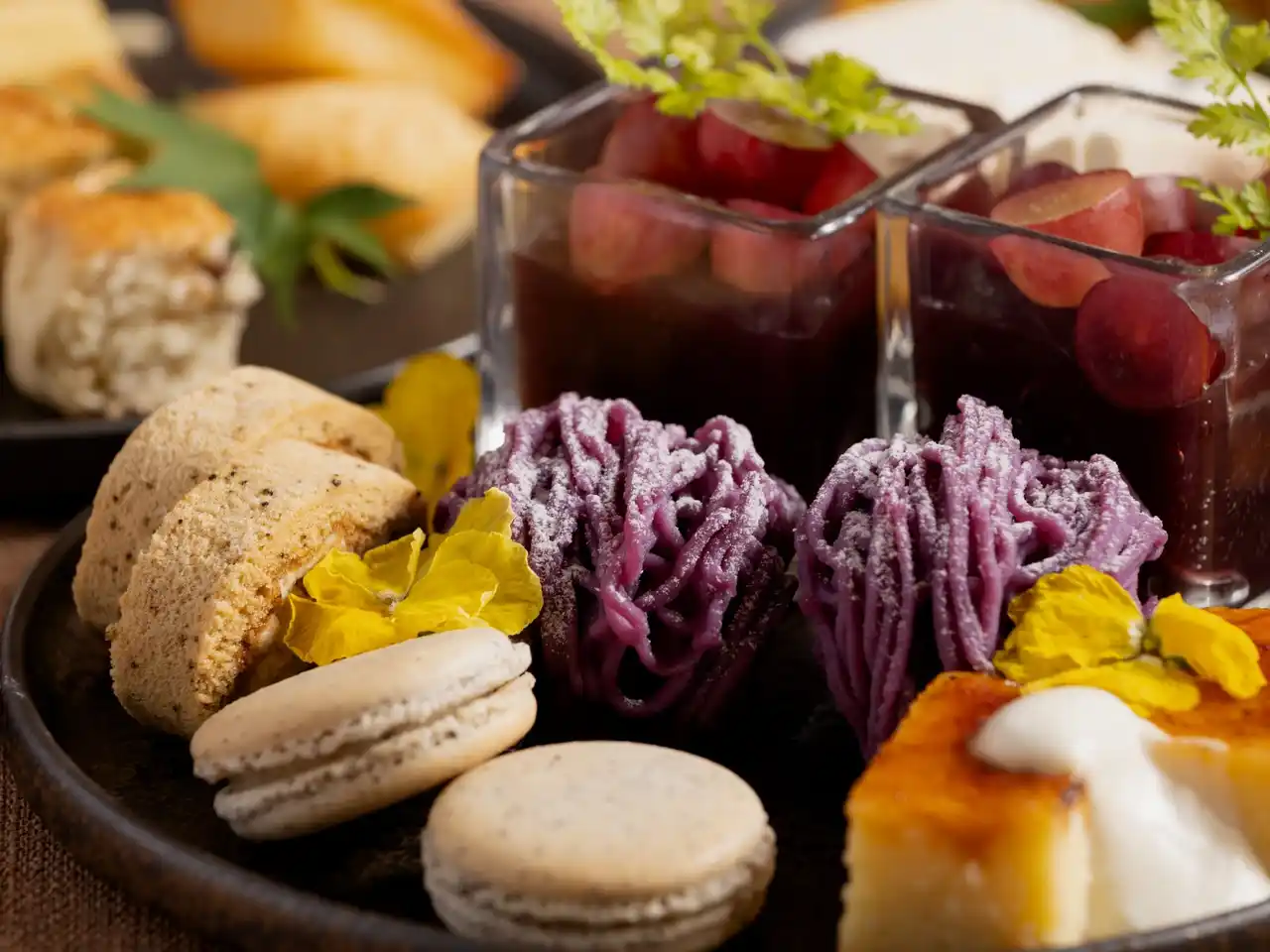 マカロン アールグレイ/サルタナレーズンスコーン&蜂蜜、ジャム/葡萄酒のジュレ/ |