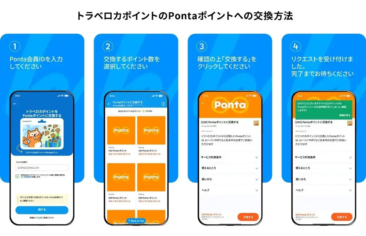 | トラベロカでは、ホテルやアクティビティを予約ことで貯まるトラベロカポイントを、毎月のお申し込みよりPontaポイントへ交換できます※。 | |||||||||