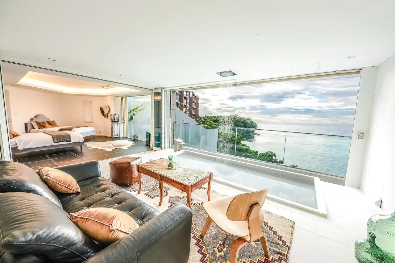 まるで離島に来たかのような秘境のロケーション。 透明度の高い海と富士山を望む貸切ヴィラで過ごす、心と自然が響き合う時間。 |