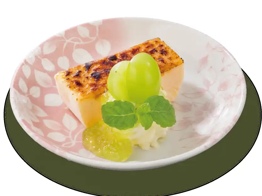 | おすすめは「カタラーナシャインマスカット添え」です!店舗で丁寧にキャラメリゼした濃厚な味わいのカタラーナにシャインマスカットジュレとシャインマスカットの果実、レアチーズムースを盛り付けました。そのほか「マスカットジェラート」や「パンナコッタシャインマスカット添え」などもご用意しております。秋ならではの贅沢スイーツをぜひお楽しみください。 | ||||||||||