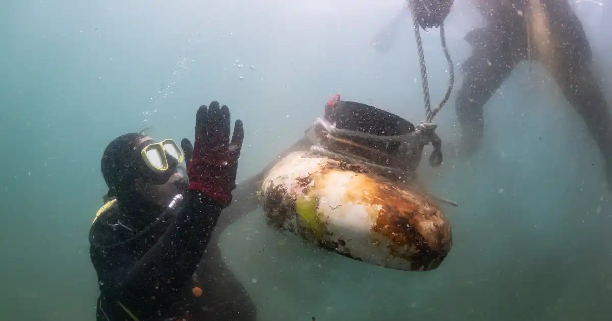 水中から引き上げた便器。この日は3つも沈んでいました。 |