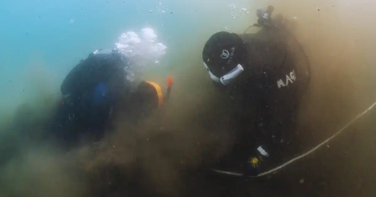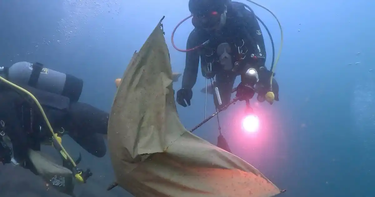 写真:漁港の中は、プロダイバーでも苦戦する危険な状態。海底に沈殿しているヘドロが、ゴミを動かすと舞い上がる |