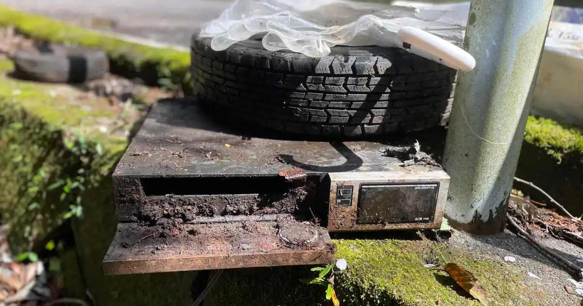 古いビデオデッキやタイヤなどがたくさん見つかります。 |