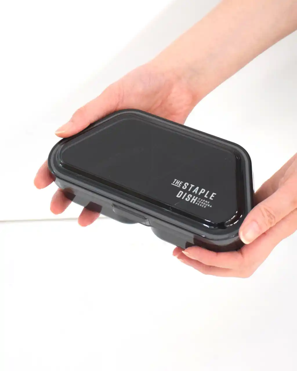 ■フタはドーム型形状なのでごろっとしたおかずがつぶれにくく、パッキンがついているので安心感アップ。 閉める時フタが本体にカチッとはまります。 |