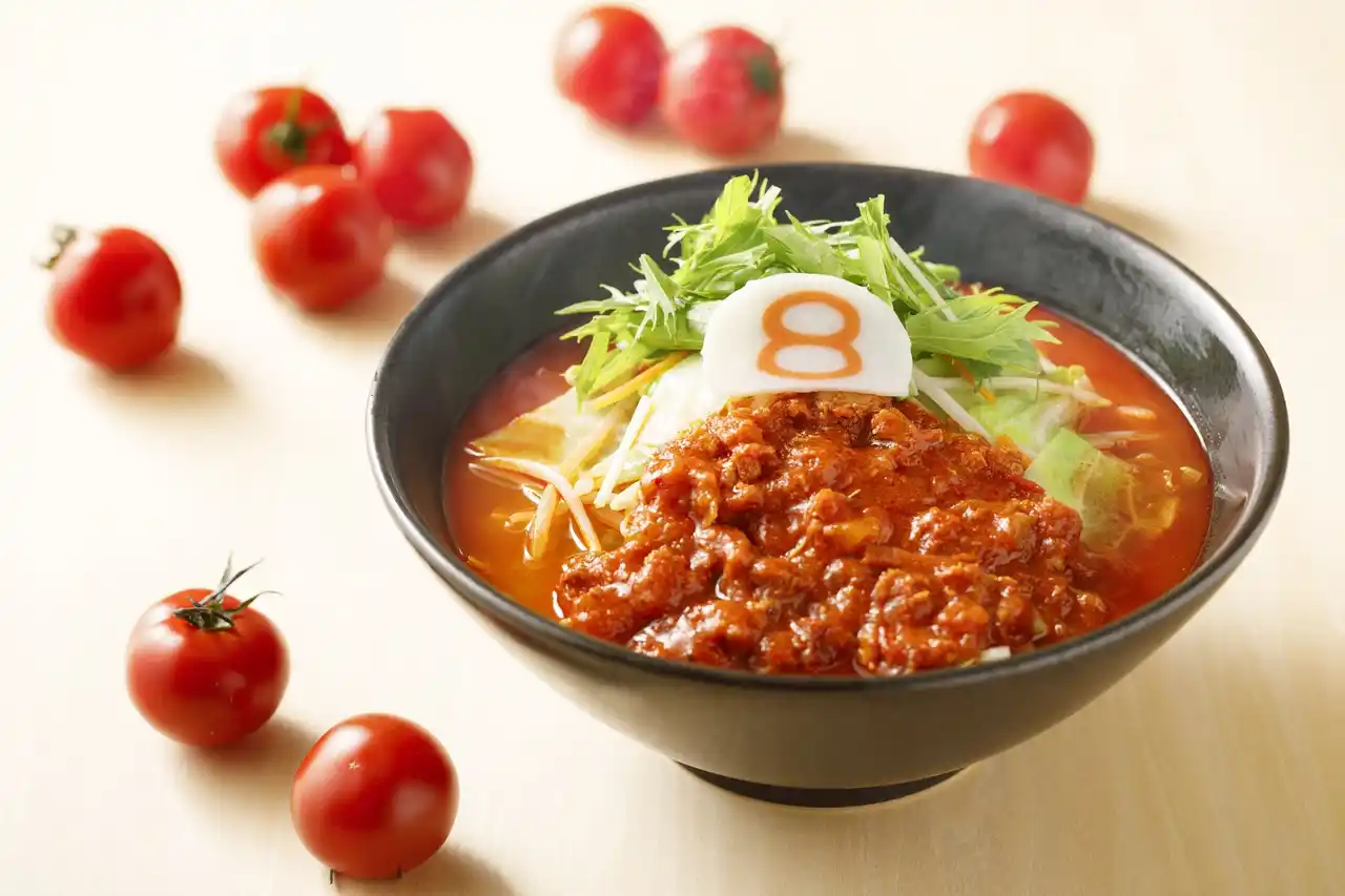 8番らーめん1番人気の期間限定メニュー「野菜トマトらーめん」が、今年も登場。12年目となる今年は、野菜トマトらーめんを通して「食べる楽しさを感じてほしい」という思いから、“FUN(楽しさ)”をテーマに、新たな魅力をまとって帰ってきます。さらに今年は、若い世代のお客様にも楽しんでいただけるよう、8番人気の定番メニュー汁なしまぜそば「唐麺(からめん)」とトマトがコラボレーションした新作「クリーミートマト唐麺(からめん)」も新登場。