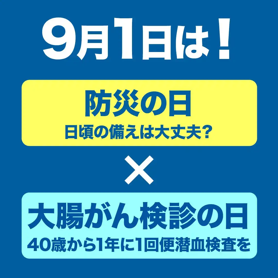 9月1日は「防災の日」、そして「大腸がん検診の日」でもあります。災害への備えと病気の早期発見は、どちらも「命を守る」ための大切な行動です。