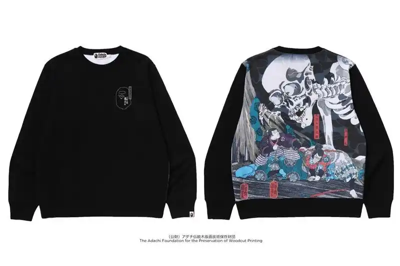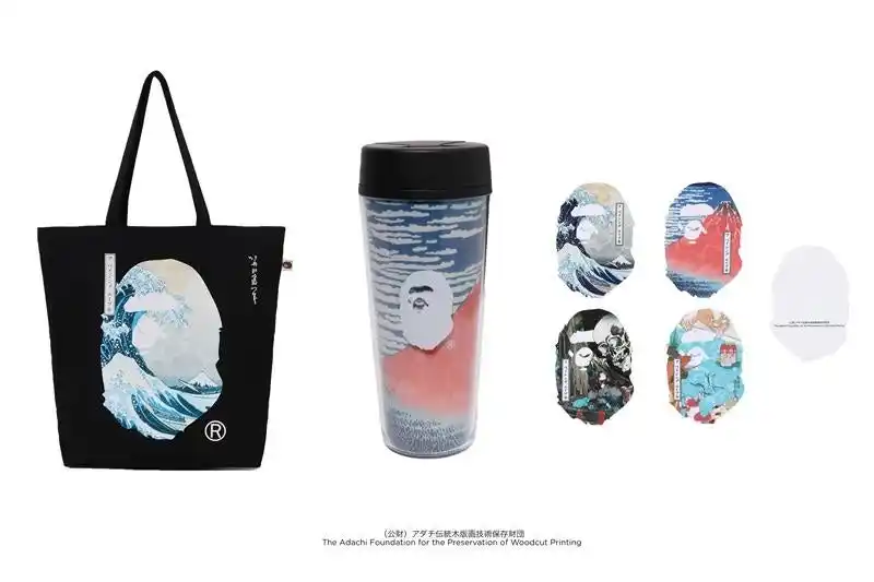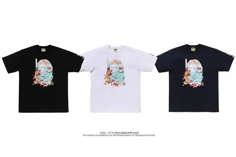なお、本コレクションにおける浮世絵作品は、公益財団法人アダチ伝統木版画技術保存財団(The Adachi Foundation for the Preservation of Woodcut Printing)の監修のもと、制作されました。伝統木版画の継承と普及に取り組む同財団との協業により、歴史的な名作がBAPE(R)のプロダクトとして新たな表情を纏いました。