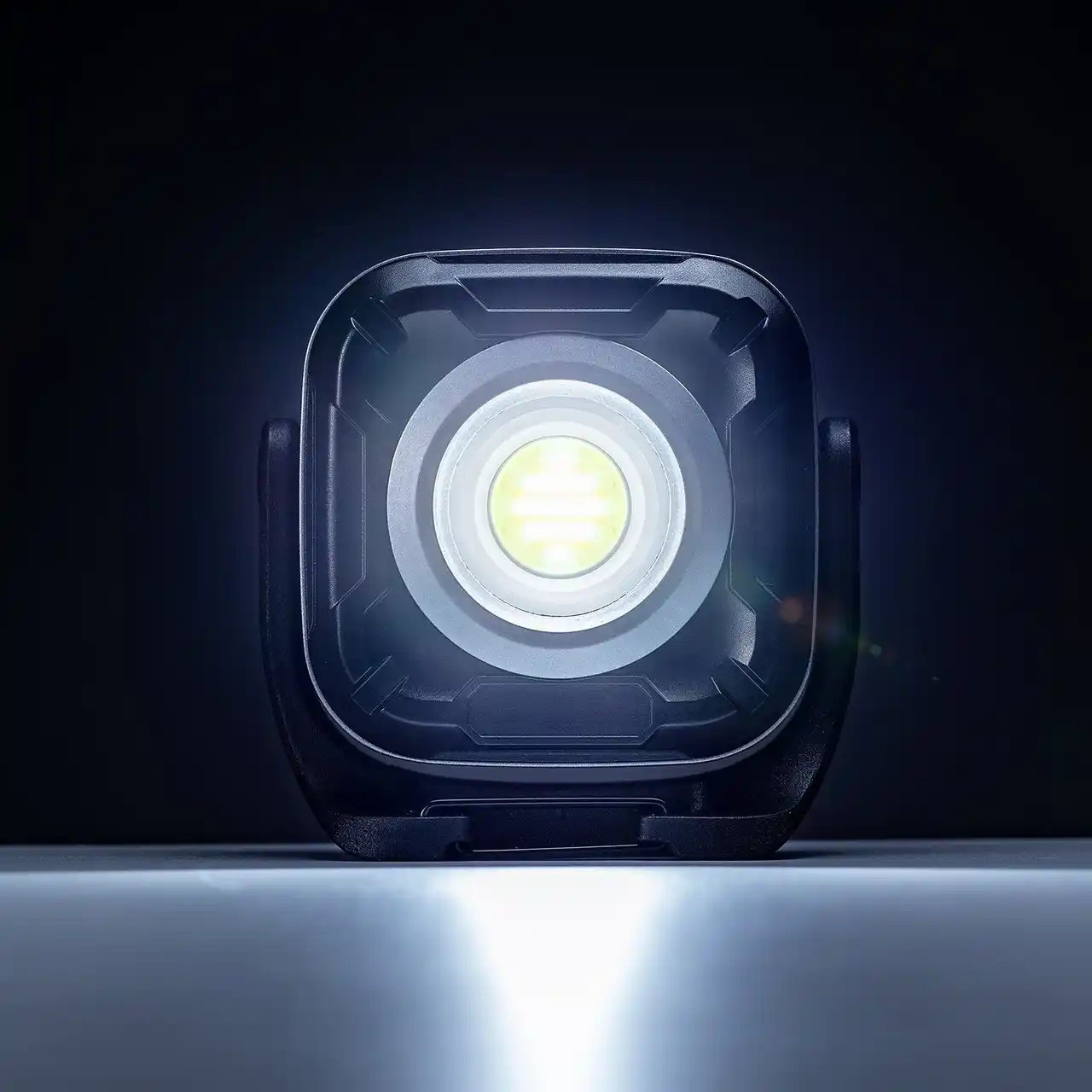 | 最大1300ルーメンの明るさを誇る本製品は、暗所での作業や屋外活動に便利です。広範囲を照らせるため、工具を使う細かい作業や夜間のアウトドアでも安心。強・弱・点滅の3モードを切り替えることで、シーンに応じた最適な照射を選択できます。 | |||||||||