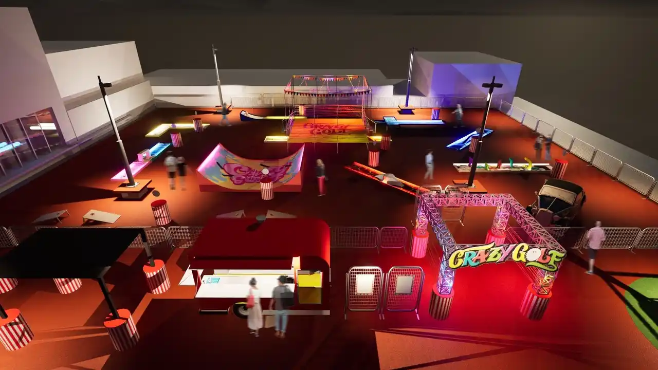 | 「CRAZY GOLF」は、パターのみを使用する手軽さに加え、ユニークなギミックやアート要素を取り入れた非日常的な体験ができるエンターテイメントです。欧米ではすでに、世代を超えて楽しめるアクティビティとして人気が拡大している体験です。 | |||||||||