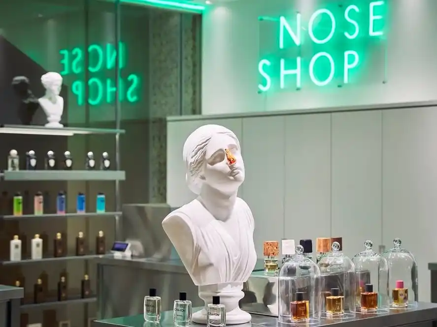SHOP(ノーズショップ)。日本初のニッチフレグランス専門店として、2017年8月にスタート。大きな鼻のオブジェや、鼻を色とりどりに塗られた石膏像を目印に、現在、東京、大阪、名古屋など、主要都市を中心に13店舗を展開しています。高級ブランドのイメージや、専門知識が必要というイメージを払拭し、香水初心者から愛好家まで、誰もが自由で気軽に楽しめる空間を提供。世界中の新進気鋭なフレグランスブランドを、独自の視点でセレクトし、最上級の香りと共に暮らす喜びや楽しさを届けることを目指しています。
