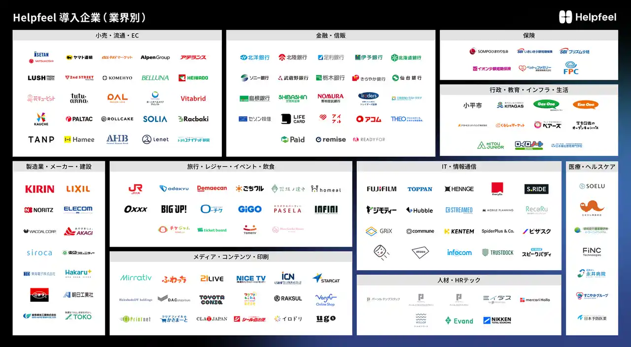▼導入実績700サイト、幅広い業界で活用されるHelpfeel |