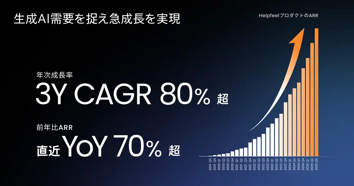 企業のAIを強くする「AIナレッジデータプラットフォーム」を提供する株式会社Helpfeel(本社:京都府京都市、代表取締役/CEO:洛西 一周、以下「Helpfeel」)は、グローバル・ブレイン株式会社(本社:東京都渋谷区、代表取締役社長:百合本 安彦)とSMBCベンチャーキャピタル・マネジメント株式会社(本社:東京都中央区、代表取締役:吉川 弘昭)(※1)、JPインベストメント株式会社(本社:東京都千代田区、代表取締役社長:中村 昌史)(※2)を投資家とした第三者割当増資により、シリーズEラウンドのファーストクローズで総額26億円の資金調達を実施しました。これにより累計調達額は59億円となります。 |