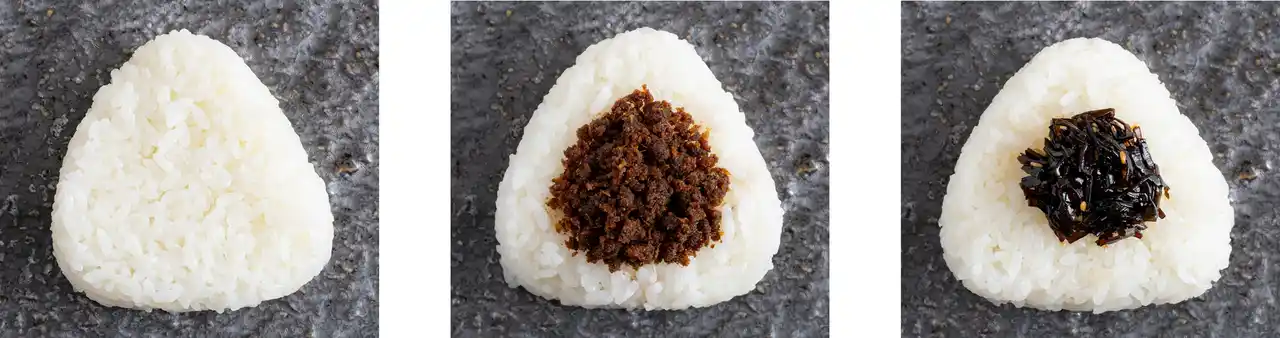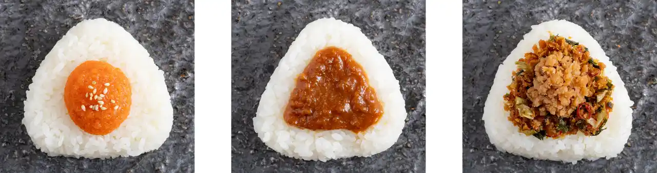 | “にぎりたて、つくりたて。”をコンセプトに、当社最上位モデルの炊飯ジャー「炎舞炊き」で炊き上げたごはんを提供いたします。使用する白米は、五ツ星お米マイスター・金子真人氏が厳選したオリジナルブレンド米。おにぎり専用に開発された独自の炊き方で「ごはん一粒一粒のもっちり感と、おにぎりにした時のふんわり感との両立」を実現。もっちり甘いごはんが口の中でほどよくほぐれていく、象印マホービンだからこそできる、おいしいおにぎりに仕上げます。 | ||||||||||||