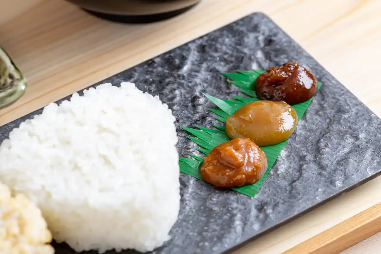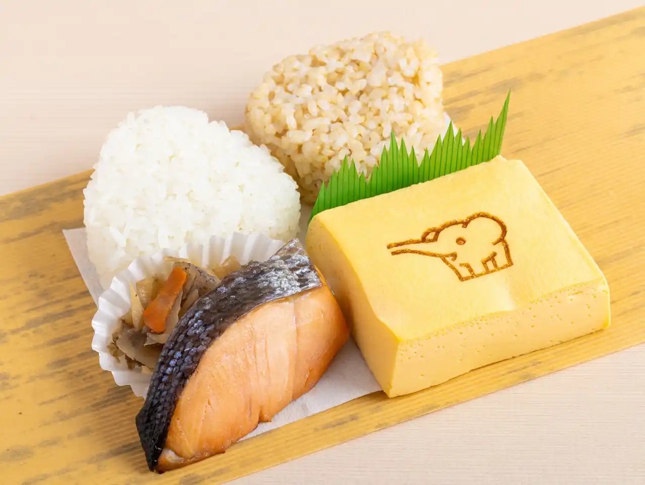 | お好みのおにぎり(数量・種類を選択)に、「だし香る玉子のせいろ蒸し」と「旨みあふれる具沢山豚汁」を添えた和定食です。追加トッピングに「3種類のおかず味噌」や「大森屋 のり結び 焼き海苔」もご用意しており、味の違いをお楽しみいただけます。 | ||||||||||||