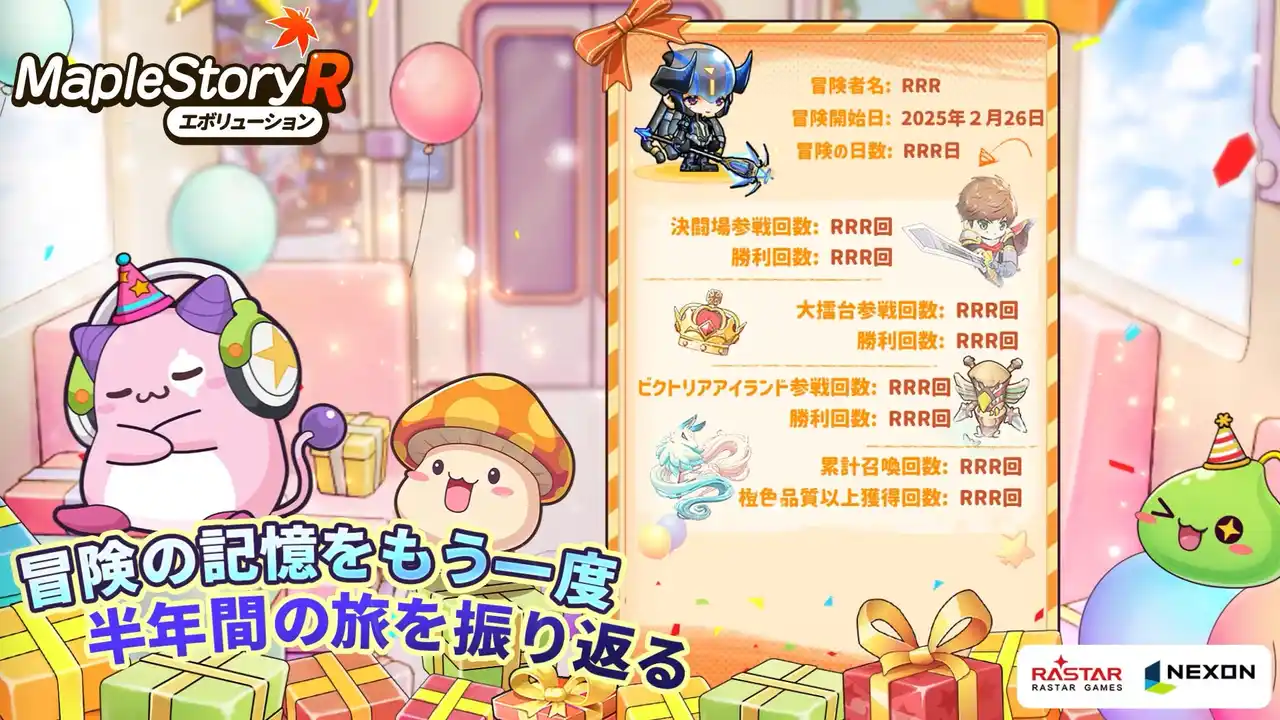 サービス開始から0.5周年を迎えることを記念し、特別PVを公開いたしました。公式xにてフォロー&リポストキャンペーンも開催し、抽選でAmazonギフト券をプレゼントいたします。さらに、記念キャンペーンに参加すると、全員プレゼントとメイプルRグッズが当たるチャンスもあります。 |