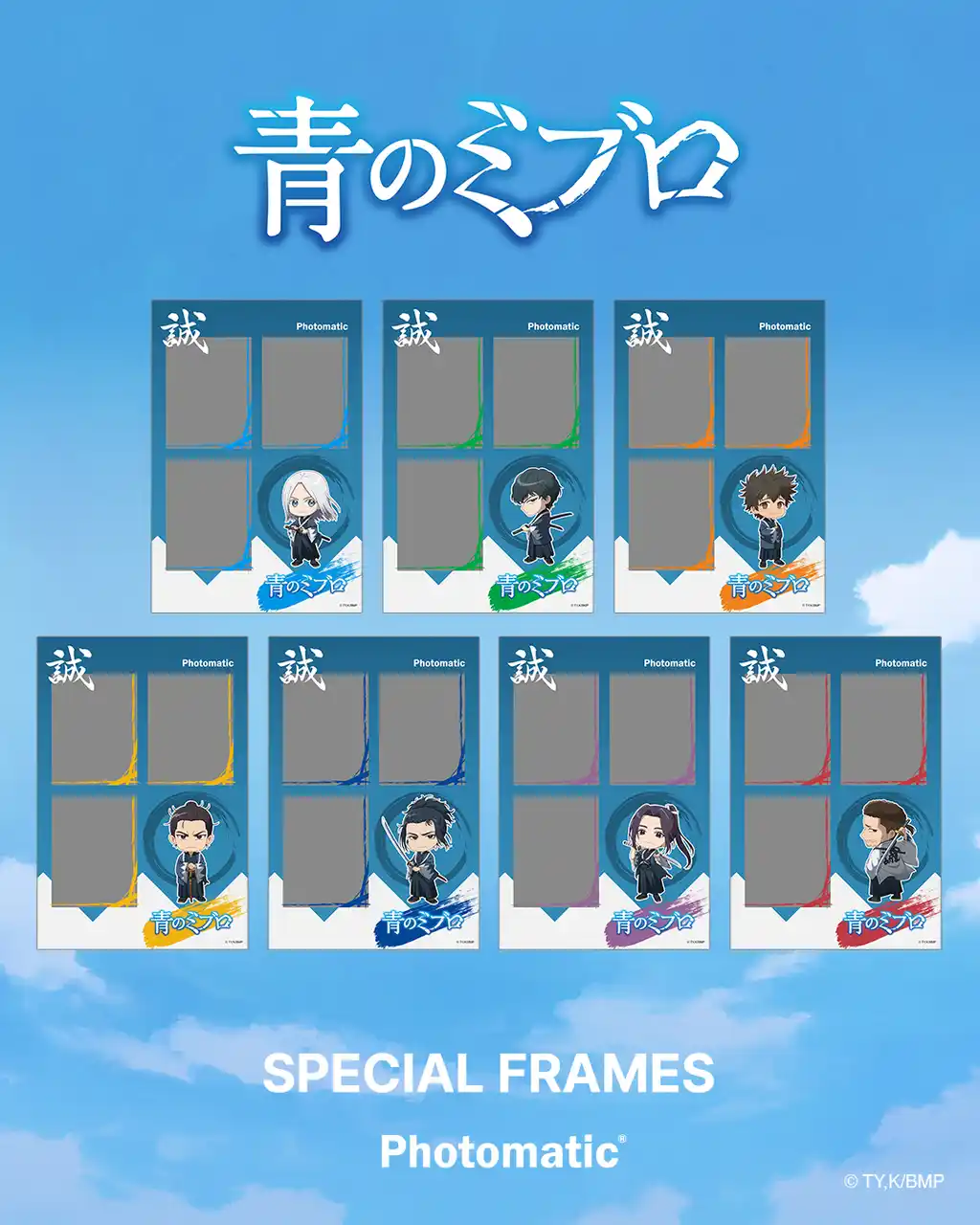 2025年9月20日・21日の2日間で開催される京都国際マンガ・アニメフェア2025(京まふ)にもPhotomaticのマルチブースを設置いたします。『青のミブロ』のキャラクターと全身撮影ができるコラボフレームが登場します。 |