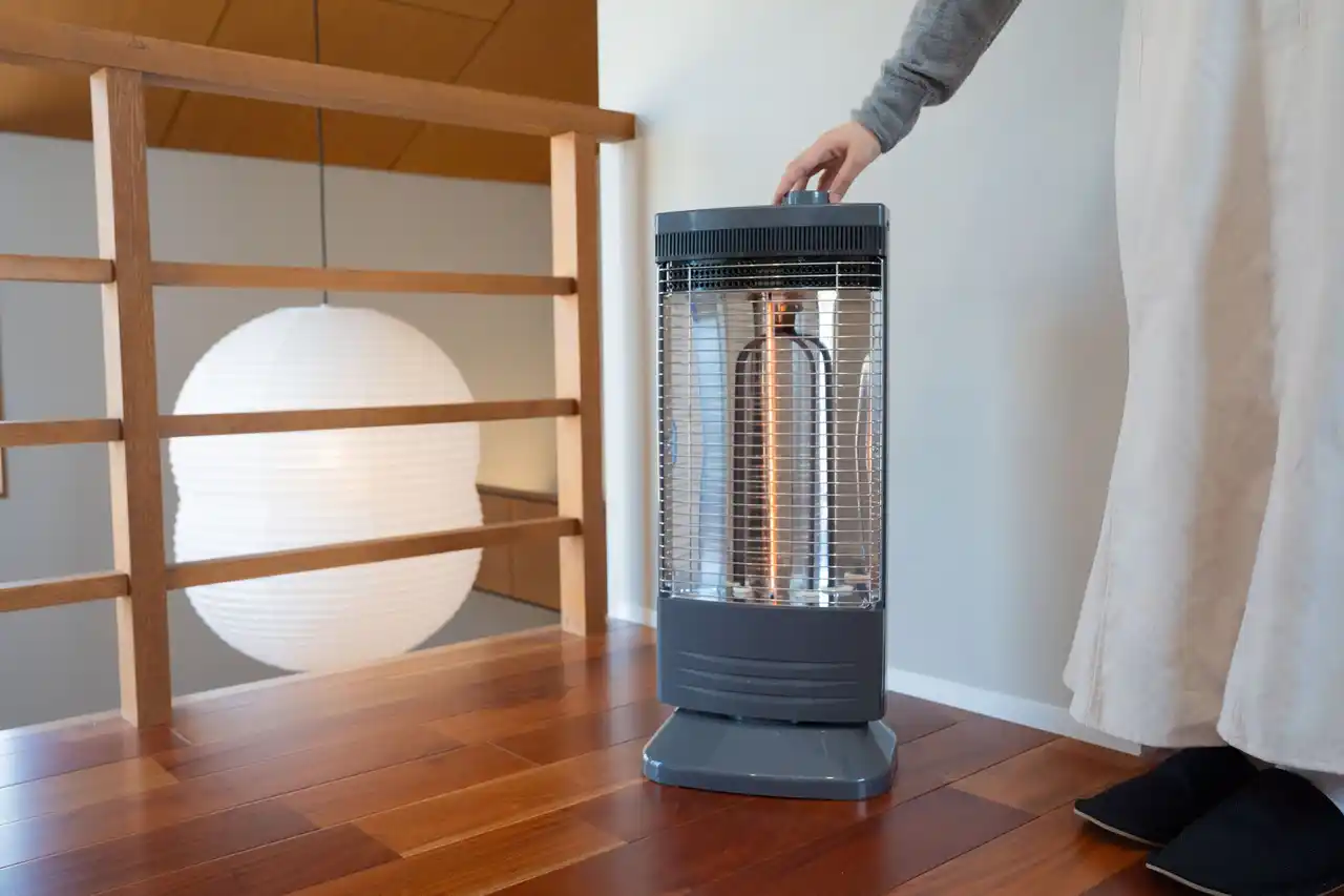 カーボンヒーターの速暖性とシーズヒーターの遠赤外線による芯までの暖かさ、それぞれ2種類のヒーターの特長を組み合わせた電気ヒーターです。速く暖まり、しっかりと身体の内側まで温もりを届けます。 |