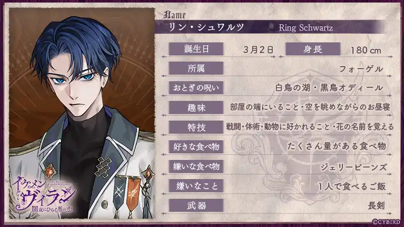 株式会社サイバード(本社:東京都品川区、代表取締役社長 兼 CEO 長嶋 貴之、以下、「サイバード」)が手掛ける、全世界でのシリーズ累計会員数4,500万人を誇る女性向け恋愛ゲーム「イケメンシリーズ」の人気作『イケメンヴィラン 闇夜にひらく悪の恋』(以下、『イケメンヴィラン』)は、「リン・シュワルツ(CV: 田邊 幸輔)」(以下、「リン・シュワルツ」)の本編ストーリーを、本日2025年8月27日(水)より配信開始しました。 |