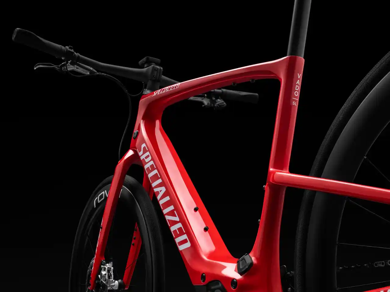 Vado SL 2 LTD S-Racing は Red Bull ライダー御用達の SRAM RED AXS グループセット、特別設計の REDフラットバー用ブレーキ、スペシャライズドのプロアスリートが実戦投入するディープで空力性能に優れるRoval Rapideカーボンホイールに、ファクトリーチームの Epic 8 XC バイクも採用するカーボン一体構造コックピットを搭載。 |