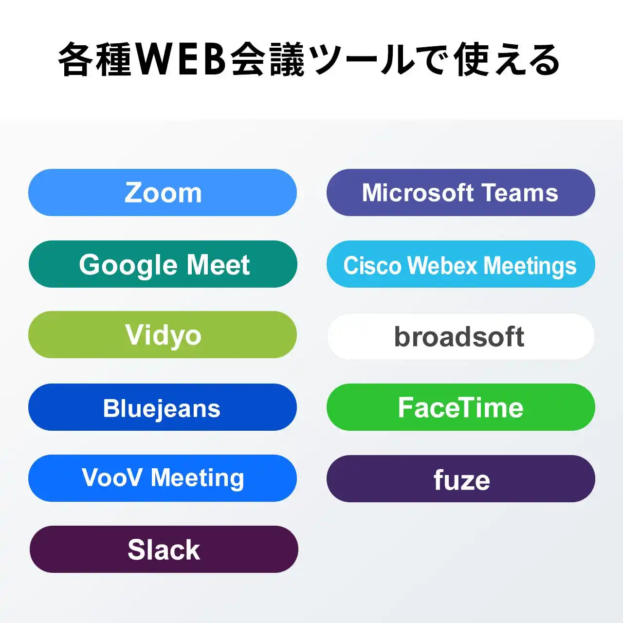 | Microsoft TeamsやZoomといった主要なオンライン会議ツールに対応。すぐに会議に参加できる安心感に加え、マイクやスピーカーの位置も自由に調整可能です。 | |||||||||||||||||