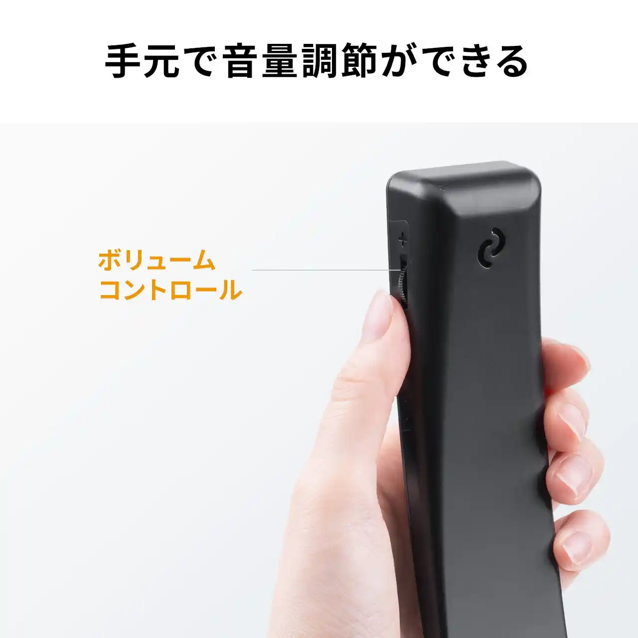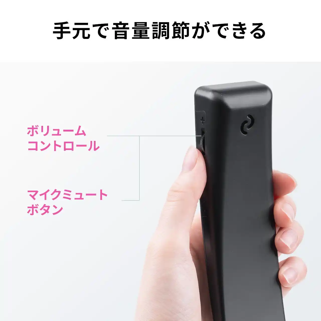 | 受話器のサイドには、マイクミュートボタン(400-HS053Uのみ)とボリュームコントロールを搭載。手元で素早く調整できるので、突然の環境音にも即対応可能です。 | |||||||||||||||||