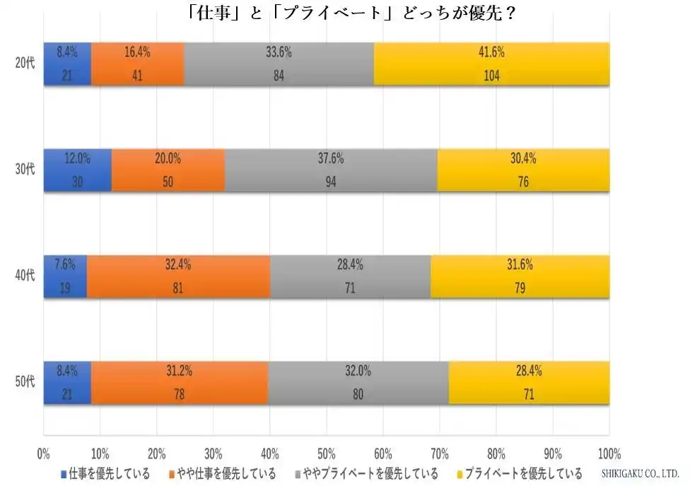 アンケート結果によれば、「プライベート」が大事だという意識が全世代にあることが分かります。その状況で、二者択一を迫る「ワーク・ライフ・バランス」の考え方は、「働くことの価値」を下げ、今の時代に適していないのではないでしょうか? |