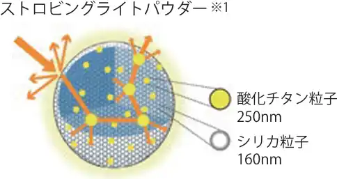 ・肌トラブルをカモフラージュする光効果…ストロビングライトパウダー※1、ライトインパウダー※2、ディフュージョンビーズ※3(すべて粉体基剤) |