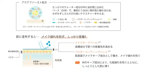 3.美容クリーム級のみずみずしくなめらかなテクスチャー~アクアファースト処方~ ウォーター成分をたっぷり含み、美容クリームのようなみずみずしさと、なめらかで、のびの良いテクスチャーを叶える『アクアファースト処方』を採用しました。 |
