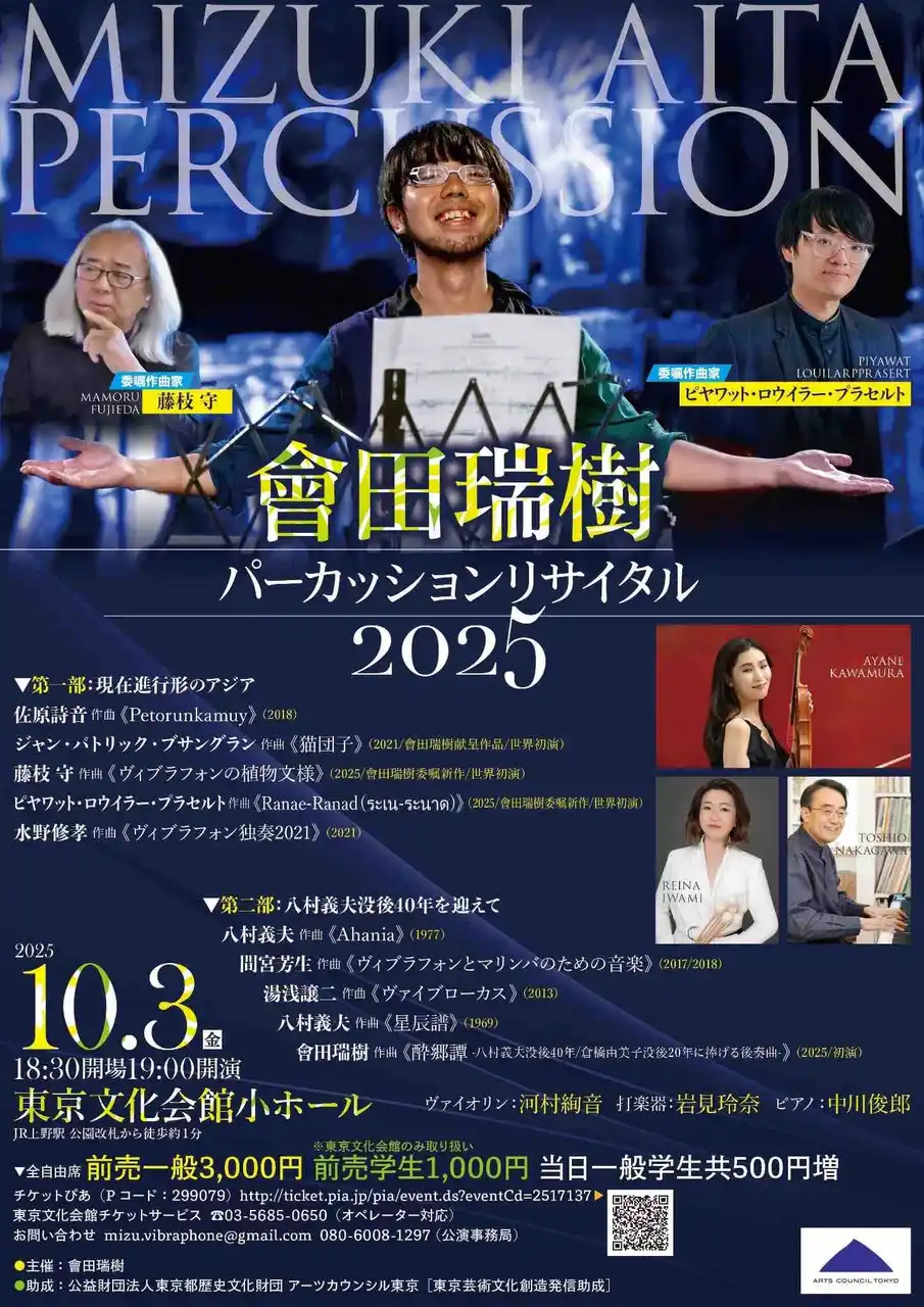 2025年10月3日、 會田瑞樹パーカッションリサイタル2025、東京文化会館で開催。 その聞きどころ。 |