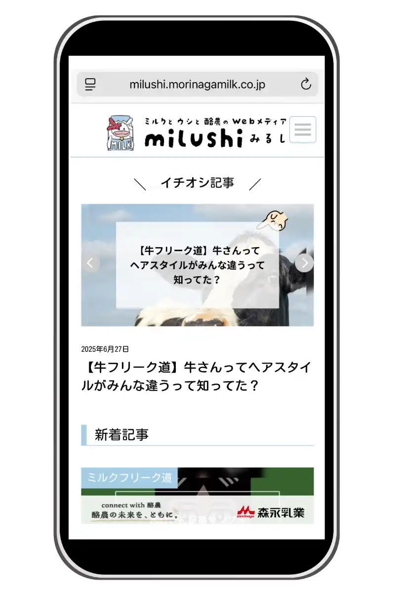 森永乳業は『ミルクとウシと酪農のWebメディア「milushi みるし」』(https://milushi.morinagamilk.co.jp/)を9月1日(月)10時より公開いたします。 |