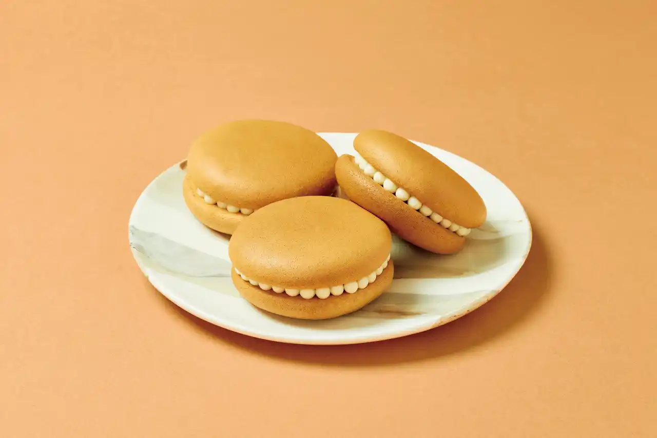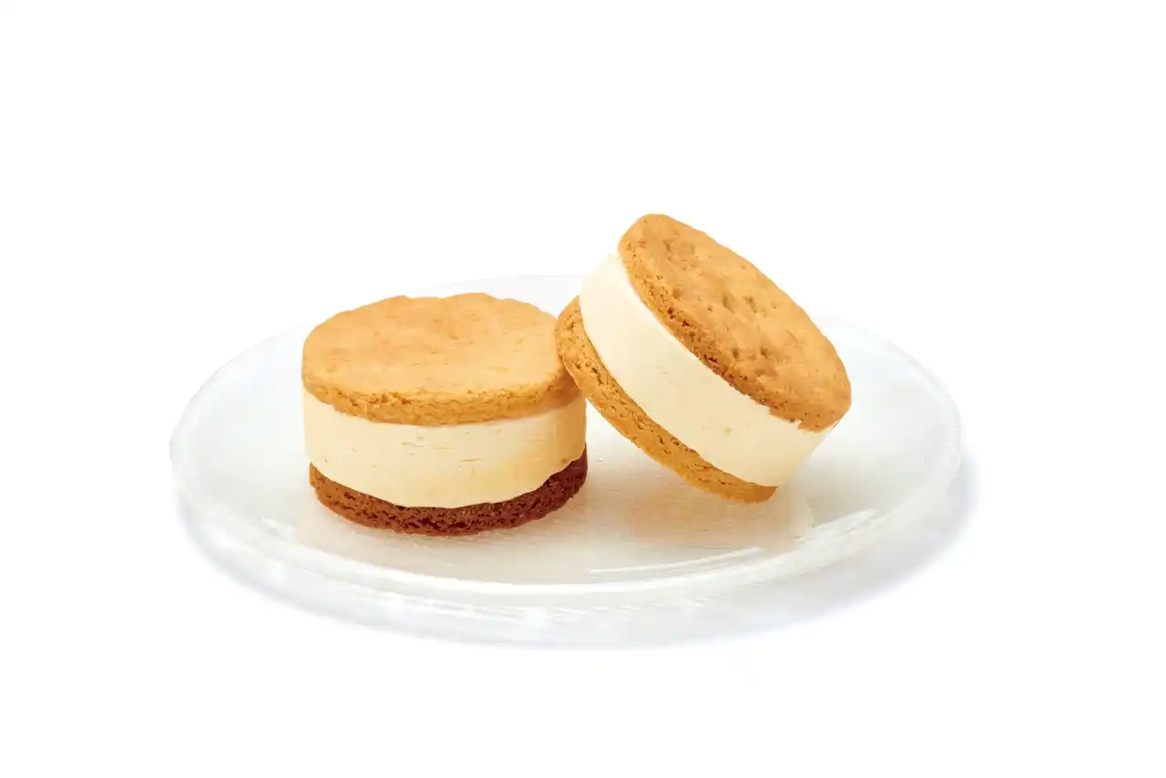 北海道産バターとラム酒をあわせた香り豊かなバタークリームを、北海道産小豆のこしあんを合わせた小豆バタークリームでサンド。米粉を使った食べ応えのあるサブレで3段重ねのクリームをはさんだ5重奏バターサンド。中にふっくらと柔らかな大納言をしのばせた、エキュート品川20周年限定商品です。※数量限定 |