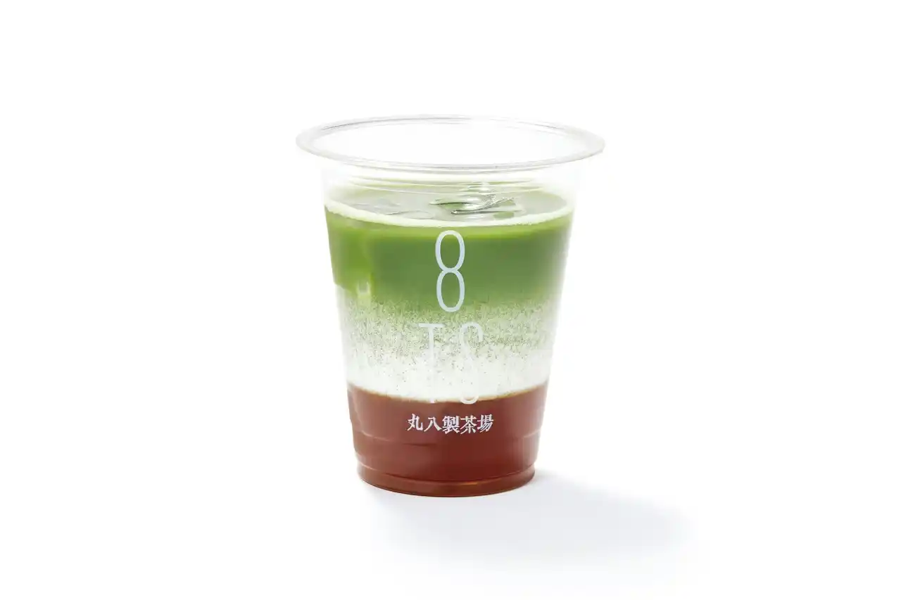 下層の深炒り焙茶ゼリーを崩しながら飲む抹茶ラテです。焙じ茶と抹茶のコラボレーションをお楽しみください。 |