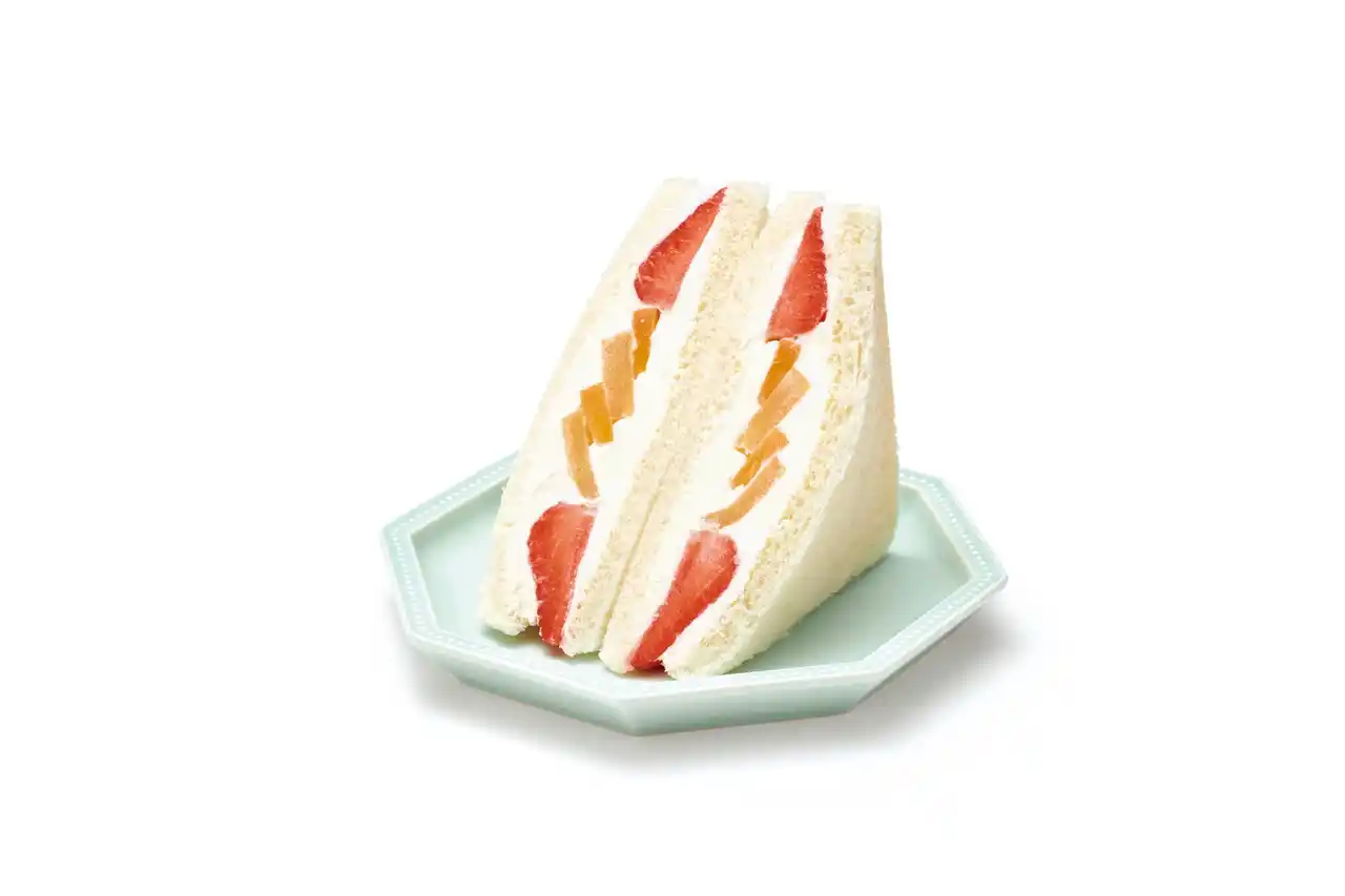 いちご、桃、リンゴをはさんだスイーツサンドイッチです。 |