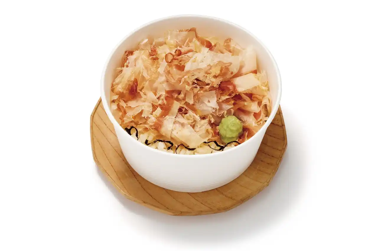 鰹節専門店"にんべん"の鰹節を贅沢に使用した鰹節めしです。本枯鰹節と海苔の層がうまみのハーモニーを奏でます。 |