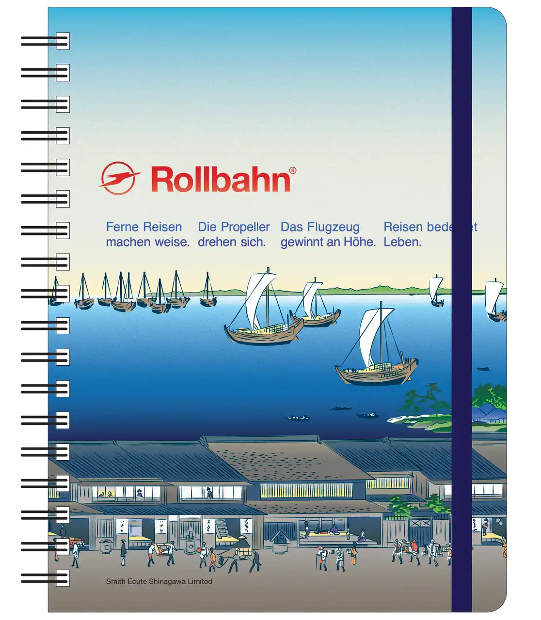 歌川広重の浮世絵「品川の駅海上」をモダンにデザイン。全ページミシン目入りの5mm方眼。クリーム色のにじみにくい上質紙を使用し、巻末にはクリアポケットも付いています。 |