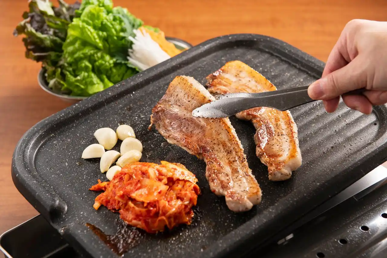 「韓国屋台ハンサム」は、日本にいながらも韓国屋台の雰囲気さながらに、サムギョプサルやキンパ、スンドゥブなどの定番料理をはじめ、チャミスルやマッコリなどの人気韓国料理をリーズナブルに楽しんでいただけます。ランチタイム営業、テイクアウト、デリバリーにも対応しています。 |
